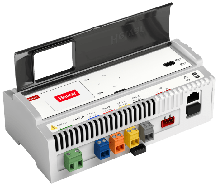 De 950 router is een gecertificeerde DALI-2 Multi Master Application controller. De router is in staat om zowel DALI als DALI-2 verlichting en DALI-2 controls aan te sturen evenals de unieke reeks Helvar control componenten.